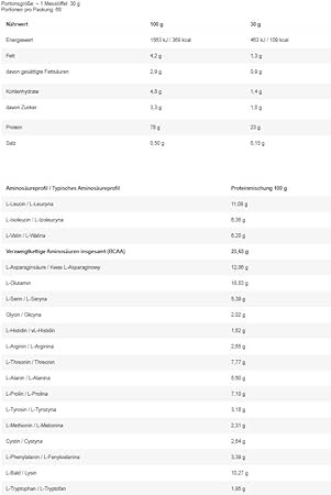 | آمینو اسیدهای زنجیره ای کل (BCAA) | 23.65 گرم | |