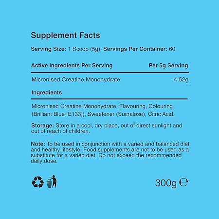 - مصرف ۲ تا ۳ ماه - ظرف ۳۰۰ گرمی = ۶۰ وعده ۵ گرمی (۲ ماه). ۵۰۰ گرم = ۱۰۰ وعده ۵ گرمی (۳ ماه به بالا). کراتین طعمدار یا بدون طعم موجود است. مناسب برای ترکیب با شیکهای پروتئینی و مکملهای قبل/بعد از تمرین.