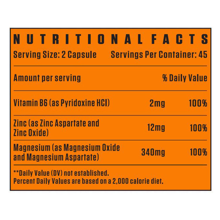 هر وعده ZMA حاوی 340 میلی گرم منیزیم است، یک ماده معدنی حیاتی که نقش مهمی در عملکردهای مختلف فیزیولوژیکی دارد. منیزیم در متابولیسم انرژی، انقباض عضلات، سنتز پروتئین و عملکرد عصبی نقش دارد و برای ورزشکاران و افراد فعال ضروری است.