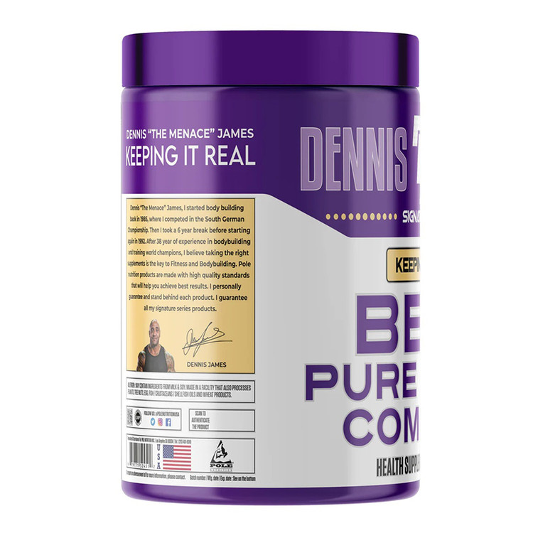 مجتمع Dennis James Signature Series Beef Pure Amino یک مکمل غذایی ممتاز است که برای حمایت از رشد، ترمیم و بازیابی عضلات طراحی شده است. این مکمل حاوی تمام نه اسید آمینه ضروری است که بدن برای عملکرد صحیح به آنها نیاز دارد، از جمله لوسین، ایزولوسین، والین، لیزین، متیونین، فنیل آلانین، ترئونین، هیستیدین و تریپتوفان.