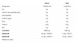 | ارزش انرژی | 115 کیلوژول / 27 کیلو کالری | 12 کیلوژول / 3 کیلو کالری |