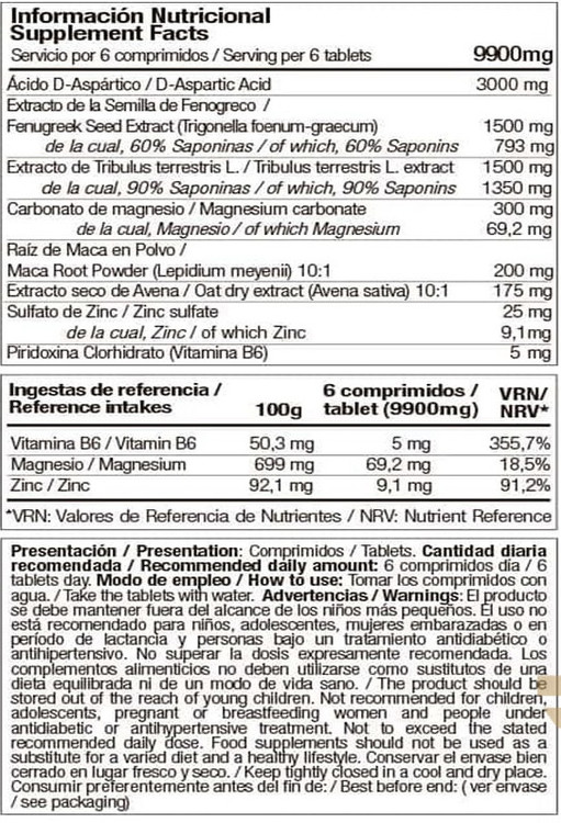 175 میلی گرم عصاره جو دو سر و 200 میلی گرم عصاره جینسینگ پر با نسبت های 10:1 که هر دو خاصیت تقویت کننده جنسی قوی دارند به این معنا هستند که می توانید تولید تستوسترون درون زا را تحریک کنید.