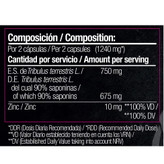 ترکیبات: عصاره خشک میوه و ریشه تریبولوس ( Tribulus terrestris L. ) 90 درصد ساپونین، کپسول خالی (هیدروکسی پروپیل متیل سلولز)، مواد ضد انسداد (استئارات منیزیم، دی اکسید سیلیکون)، گلوکونات روی.