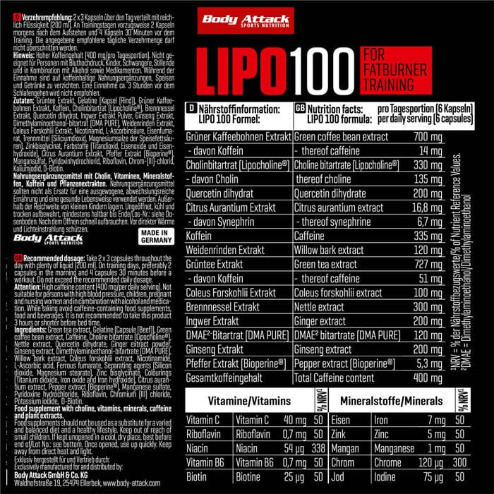 BODY ATTACK LIPO 100 120 Caps