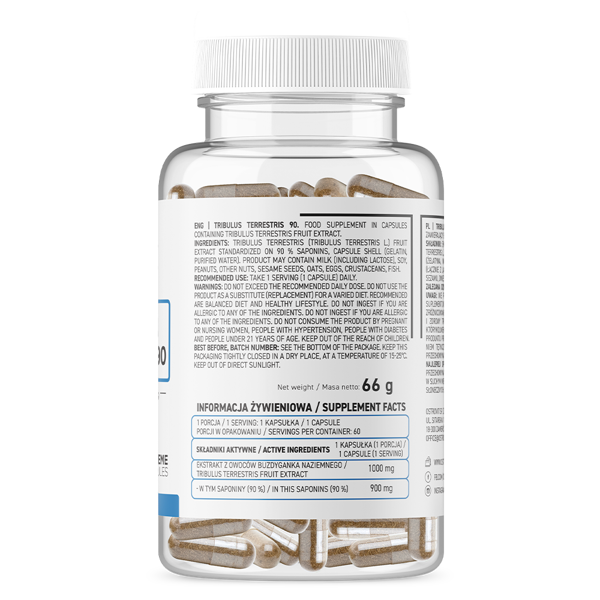 هر کپسول از تریبولوس ترستریس استروویت حاوی 1000 میلی گرم عصاره میوه تریبولوس ترستریس و 900 میلی گرم ساپونین است. پوسته کپسول از ژلاتین و آب تصفیه شده ساخته شده است. یکی از ارزشمندترین فواید این ماده توانایی آن در افزایش تستوسترون درون زا، هورمون جنسی اولیه مردانه است. علاوه بر این، به عنوان یک دیورتیک طبیعی عمل می کند، باعث افزایش ادرار و کمک به دفع سموم از بدن می شود. این می تواند به کاهش آب اضافی زیر پوستی و بهبود ظاهر کلی بدن کمک کند. همچنین نشان داده شده است که OstroVit Tribulus وضعیت فیزیولوژیکی میل جنسی را در مردان بهبود می بخشد و می تواند به کاهش سطح کلسترول و کاهش LDL “کلسترول بد” کمک کند. در نهایت، این مکمل پاراهورمون به بازسازی پس از ورزش کمک می کند و باعث لیپولیز یا چربی سوزی می شود.