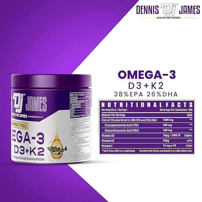 ژل های نرم افزاری DENNIS JAMES SIGNATURE SERIES OMEGA-3 D3+K2 یک مکمل قدرتمند روزانه است که می تواند برای چندین بخش از سلامت شما مفید باشد. چه ورزشکار باشید و چه نباشید، فعالیت های روزمره می تواند باعث التهاب و درد مفاصل شود. اسیدهای چرب امگا 3 موجود در این ژل های نرم می تواند به کاهش این پاسخ کمک کند و منجر به درد و سفتی مفاصل کمتر شود.