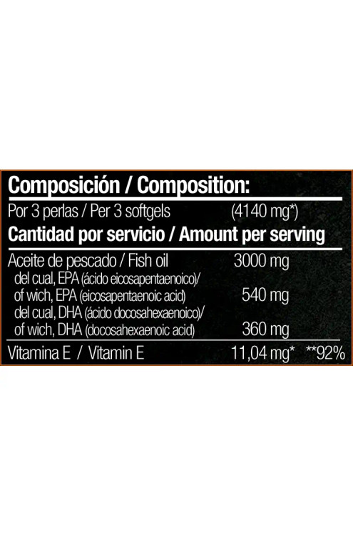Aceite de pescado (18٪ EPA، 23٪ DHA)، پرلا واسیا (ژلاتین)، گلیسرول، آگوا، ویتامین E (D-آلفا-توکوفرول). / روغن ماهی (18٪ EPA، 12٪ DHA)، پوسته خالی (ژلاتین)، گلیسرول، آب، ویتامین E (D-alpha-tocopherol).