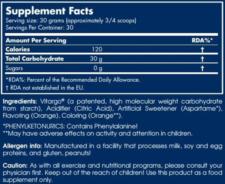 Vitargo عمدتاً از کربوهیدراتهای با وزن مولکولی بالا جدا شده از نشاسته ذرت تشکیل شده است. واقعیت این است که کربوهیدرات ها درشت مغذی های بسیار مهمی برای عملکرد طبیعی بدن هستند. آنها در بازیابی و عملکرد عضلانی (انبساط و انقباض) پس از یک ورزش شدید که ذخایر گلیکوژن را خشک می کند، کاملاً حیاتی هستند. Vitargo ذخایر گلیکوژن در ماهیچه های اسکلتی را تقریباً بلافاصله پر می کند و انرژی بسیار زیادی برای مقابله با تمرینات به شیوه ای ایمن و کارآمد در اختیار شما قرار می دهد.