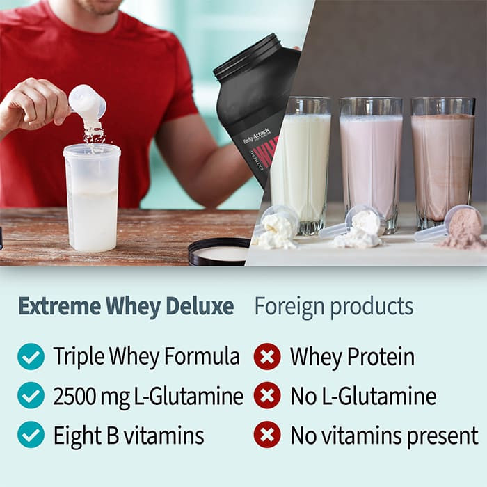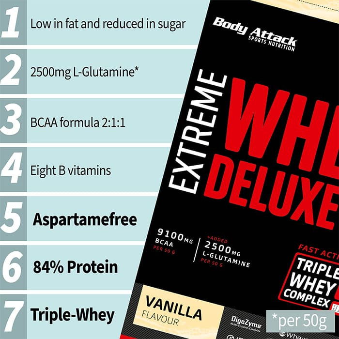 پودر پروتئین قوی برای لوکس عضلانی! بدن شما به چیزی خاص نیاز دارد: پروتئین آب پنیر با کیفیت بالا ما از بیش از 12 سال توسعه. فرمول Triple-Whey ترکیبی قوی از 84 درصد پروتئین با ارزش غذایی عالی را برای شما فراهم می کند. سریعتر، کارآمدتر، بهتر! افزودن DigeZyme® جذب سریعتر مواد مغذی و بهترین زیست سازگاری ممکن را تضمین می کند. البته کل ترکیب مواد مغذی بدون آسپارتام، قند کم و چربی کم است . نه طعم دهنده آب یا شیر شما را به یک شیک خامه ای پروتئین آب پنیر تبدیل می کند - که طعم فوق العاده ای نیز برای عضلات شما دارد.