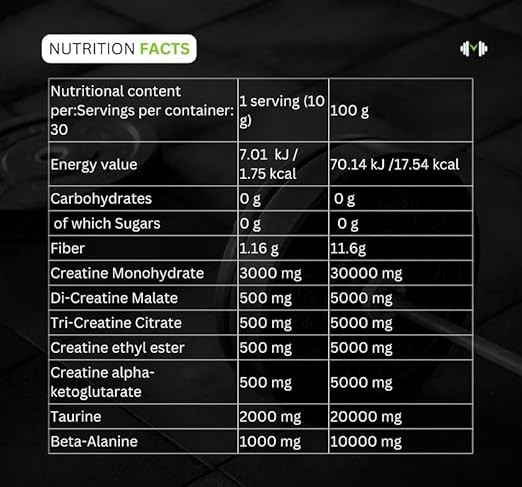 - ✓میکس کامل کراتین (کراتین مونوهیدرات، دی کراتین مالات، تری کراتین سیترات، کراتین اتیل استر، کراتین آلفا کتوگلوتارات)،