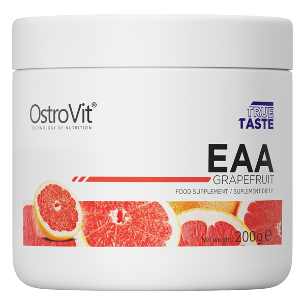 OstroVit EAA یک مکمل غذایی با کیفیت بالا است که حاوی اسیدهای آمینه ضروری، و همچنین ویتامین B6، L-گلوتامین، L-تیروزین و L-سیستئین است. این یک آماده سازی با طعم لذیذ گریپ فروت با طراوت است که به شکل پودر مناسب موجود است. این محصول برای ورزشکاران و افرادی است که می خواهند رژیم غذایی روزانه خود را با ترکیبات ارزشمند تکمیل کنند.