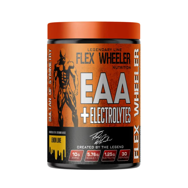 مکمل Flex Wheeler Nutrition EAA + Electrolytes، هر ظرف از این فرمول استثنایی 30 وعده حمایت ورزشی خالص را فراهم می کند. EAA با الکترولیت ها به دقت ساخته شده است تا نتایج بهینه را ارائه دهد. هر وعده حاوی 5.76 گرم آمینو اسیدهای شاخه دار (BCAA) از جمله لوسین، ایزولوسین و والین است. این اسیدهای آمینه ضروری در سنتز پروتئین عضلانی، تقویت رشد عضلانی، کاهش تجزیه عضلانی و افزایش ریکاوری بعد از تمرین بسیار مهم هستند.