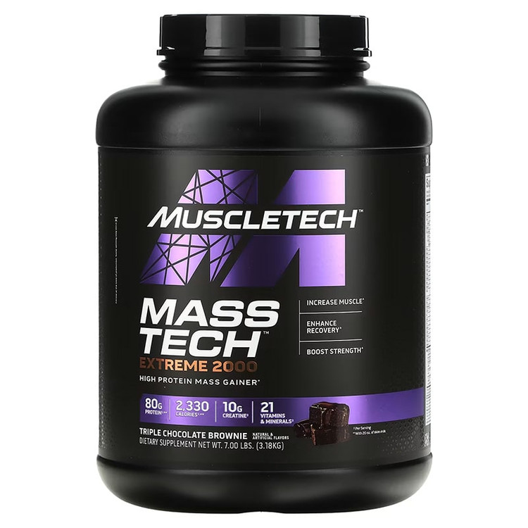 فرمول برتر Muscletech Mass Tech Extreme 2000 حاوی 80 گرم پروتئین، بیش از 400 گرم کربوهیدرات و 2000 کالری (اگر با 16 اونس شیر بدون چربی مخلوط شود) به اضافه 8 گرم L-لوسین، 10 گرم کراتین و 10 گرم کراتین و ... ویتامین ها و مواد معدنی که به افزایش توده عضلانی و قدرت کمک می کنند.