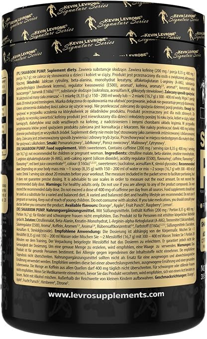 - دوز قوی برای عضله سازی هدفمند: باورنکردنی 3200 میلی گرم بتا آلانین قوی (CarnoSyn)، 2000 میلی گرم آرژنین AKG، 6000 میلی گرم سیترولین مالات، 3000 میلی گرم کراتین مونوهیدرات و 400 میلی گرم کافئین. برای پمپ عضلانی فوق العاده و دستاوردهای نهایی از مواد با کیفیت بالا در غلظت بالا بهره مند شوید. افزایش عروق و سیری عضلانی: عوامل هیدراتاسیون انتخاب شده ویژه با خواص اسمزی قوی تضمین می کنند که اکسیژن، گلیکوژن، آب و قدرت خام بیشتری در هر استفاده در دسترس شماست. پس از یک چرخه کامل LevroPump در رژیم غذایی، عضلات شما با بخار کامل کار خواهند کرد. افزایش عروق و اشباع عضلانی: این ترکیبات انتخاب شده خاص، با خواص چشمگیر، تامین اکسیژن بهینه را تضمین می کنند و جذب گلیکوژن و آب را در عضله تقویت می کنند. پمپ افراطی از طریق گردش خون بهینه: ماهیچه های اسکلتی را با مواد مغذی تقویت کننده عملکرد برای بهبود سفت شدن پوست در حین ورزش فراهم می کند. بازسازی را بهینه کنید و ذخیره هدفمند عضلات را بعد از تمرین احساس کنید. بدون شک یکی از بهترین محصولات تقویت کننده قبل از تمرین در بازار است. از هر تمرین به طور موثر استفاده کنید و شاهد رشد عضلات خود باشید! مکمل های قبل از تمرین جلسات تمرینی فشرده را تضمین می کنند و نتایج تمرینی غیر قابل تصوری را به شما می دهند.