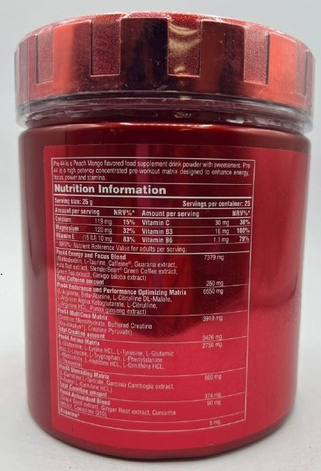 Pre 44 یک پیش تمرین کاملاً جامع و انفجاری است که برای افزایش تحریکات ذهنی و فیزیکی طراحی شده است.
