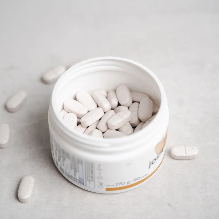 مواد تشکیل دهنده: مالتودکسترین، گلوکزامین سولفات (از صدف )، عامل حجیم کننده (سلولز)، تثبیت کننده [پلی وینیل پیرولیدون (PVP)]، کربنات کلسیم، متیل سولفونیل متان (MSM)، کندرویتین سولفات، ترکیبات گیاهی ( معصاره گیاهی ماکروپونیل کارن ) 0.15٪ آنتوسیانیدین)، پودر علف یونجه ( Medicago sativa L.)، عصاره ریشه جین سینگ panax (استاندارد شده تا 20٪ جین سنوزید)، کلاژن (از گوشت گاو)، عامل ضد جوش (تالک)، بروملین (از Ananas comosus 1200 GDU) / گرم)، L-هیستیدین، L- فنیل آلانین، L-آسکوربیک اسید