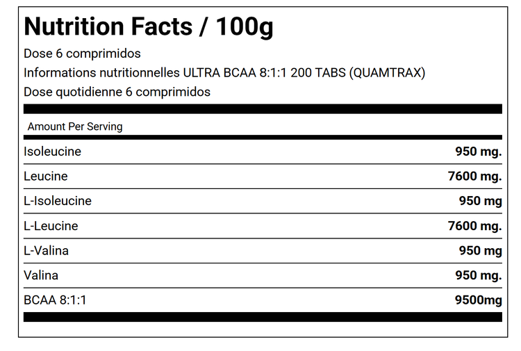 بی سی ای ای کوامترکس حاوی سه مورد از مهمترین اسیدهای آمینه برای ورزشکاران است :پلوسین ، ایزولوسین و والین به نسبت 1 : 1 : 8 . محتوای بالای لوسین در این محصول باعث افزایش غلظت این اسید آمینه می شود که تحریک سنتز پروتئین و محافظت از سلول های عضلانی در برابر تخریب را به دنبال دارد .