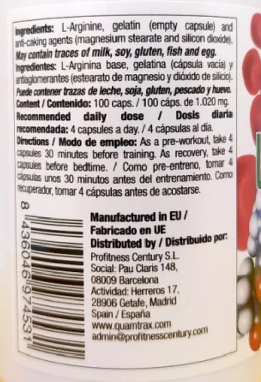 پایه ال-آرژنین، ژلاتین (کپسول خالی)، عوامل ضد تشکیل (استئارات منیزیم و دی اکسید سیلیکون).