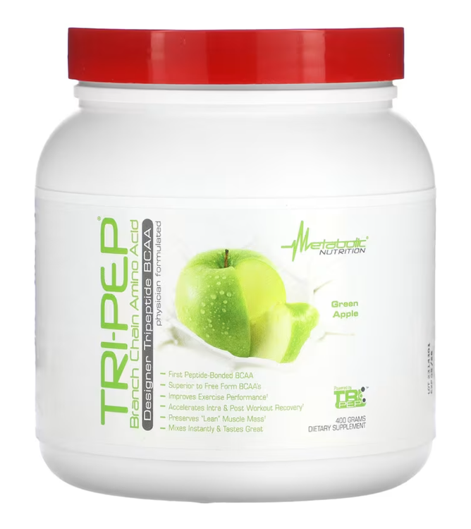 - TRI-PEP از متابولیک نوتریشن یک BCAA پیوند پپتیدی 2:1:1 برای حداکثر جذب است که به طور چشمگیری ریکاوری بعد از تمرین را بهبود می بخشد، سنتز پروتئین عضلانی را افزایش و تحریک می کند، تجزیه عضلانی را کاهش می دهد و باعث ریکاوری و ترمیم عضلات می شود و درد و خستگی عضلانی را کاهش می دهد.