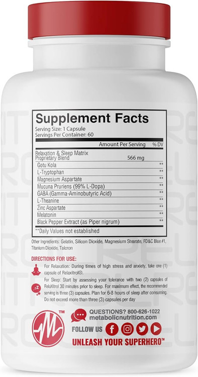 Relaxitrol اینجاست تا به شب های بی قرار شما پایان دهد. شناخته شده است که خواب خوب شبانه برای احساس استراحت، بهبودی و سرحالی ضروری است.Relaxitrol توسط Metabolic Nutrition یک کاتالیزور آرامش بخش و خواب است. این شامل تمام مواد طبیعی و غیرعادی است. اینها برای بازیابی الگوهای خواب سالم، بهبود خواب REM و کاهش اضطراب کار می کنند. پرتاب و چرخش تمام شب دیگر مشکلی نخواهد بود. †