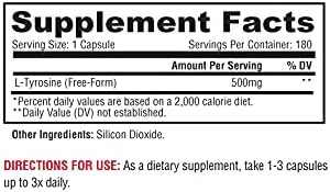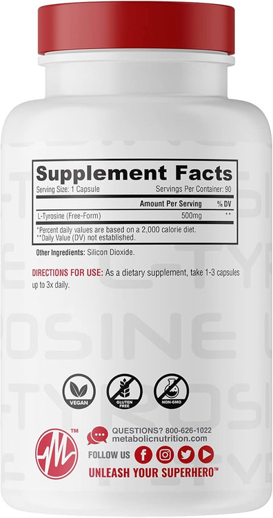 Metabolic Nutrition L-Tyrosine, 90 Capsules, 500mg, Supports Mental Alertness & Focus
