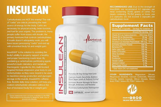 InsuLEAN™ راه حلی برای کمک به توانایی بدن برای حمایت صحیح از سطح انسولین سالم و عملکرد مناسب است. با ترکیب یک عامل تقسیمکننده کربوهیدرات، مقلدهای قوی انسولین، و ترکیبات ترموژنیک متابولیک. این فرمول هدفمند چند وجهی بدن شما را قادر می سازد تا از کربوهیدرات ها همانطور که قرار بود استفاده شود استفاده کند تا تولید انرژی و ذخیره گلیکوژن در عضله را به حداکثر برساند. محلول دوز روزانه انعطاف پذیر و بدون کافئین InsuLEAN به شما کمک می کند مصرف کربوهیدرات را بدون ترس از افزایش چربی بدن یا افزایش وزن کنترل کنید.