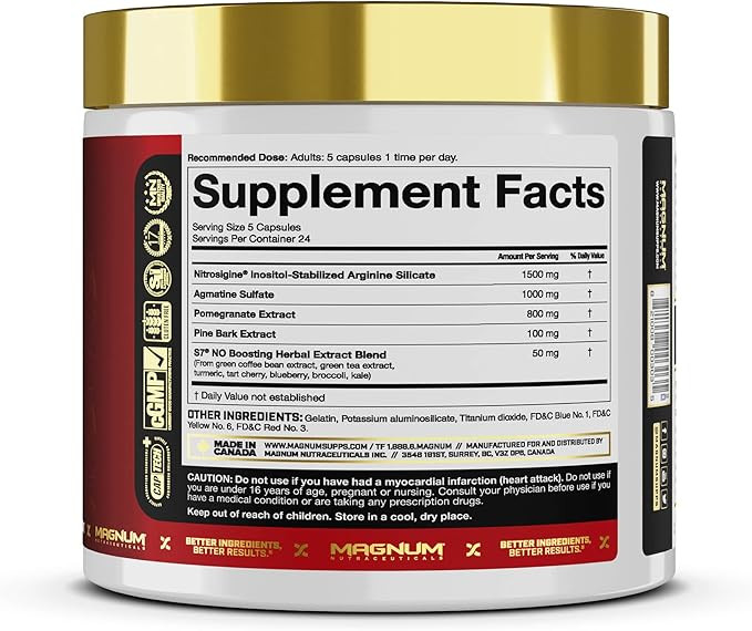 آرژنین سیلیکات پایدار شده با نیتروسیگین® اینوزیتول، سولفات آگماتین، عصاره انار، عصاره پوست درخت کاج و ترکیب عصاره گیاهی تقویت کننده NO S7®، همگی با هم برای افزایش تولید اکسید نیتریک عمل میکنند و منجر به بهبود جریان خون، پمپهای عضلانی و رساندن مواد مغذی به عضلات در حال فعالیت در حین ورزش میشوند. † این ترکیب از مواد برای افرادی که به دنبال افزایش گشاد شدن عروق، پمپهای عضلانی و عملکرد کلی تمرین بدون استفاده از محرکها هستند، ایدهآل است. †