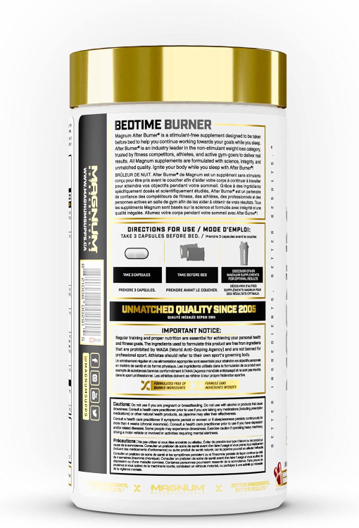 - افتر برنر مگنوم ترکیبی مؤثر از مواد با دوز مشخص و بدون محرک را در یک فرمول کپسولی قدرتمند جای داده است. با افتر برنر، هنگام خواب بدنتان را آتش بزنید!