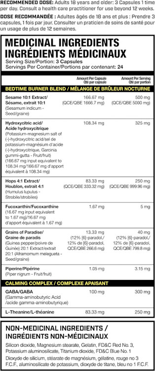 - بدون محرک، ترموژنیک - افتر برنر کاملاً بدون محرک است و برای مصرف قبل از خواب طراحی شده است تا به مردان و زنان کمک کند تا در طول خواب نیز به اهداف کاهش وزن خود ادامه دهند.