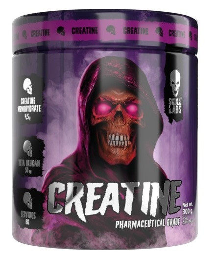 کراتین SKULL LABS®. مکمل غذایی. مکمل رژیم غذایی با کراتین و بتا گلوکان، برای بزرگسالانی که ورزشهای شدید انجام میدهند توصیه میشود. کراتین عملکرد فیزیکی را در دورههای متوالی ورزشهای کوتاه مدت و شدید افزایش میدهد، اثر مفید با مصرف روزانه ۳ گرم کراتین حاصل میشود.