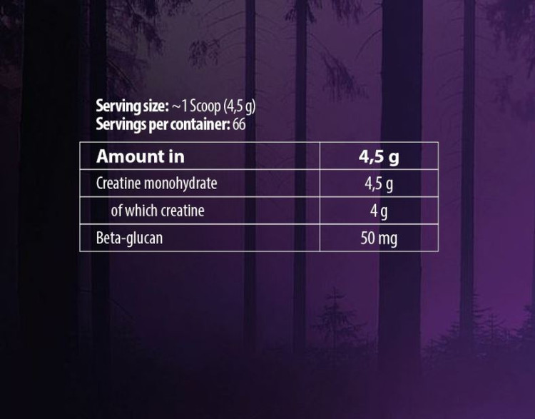 - هر وعده حاوی 4.5 گرم کراتین مونوهیدرات با کیفیت بالا و 50 میلی گرم بتا گلوکان است.