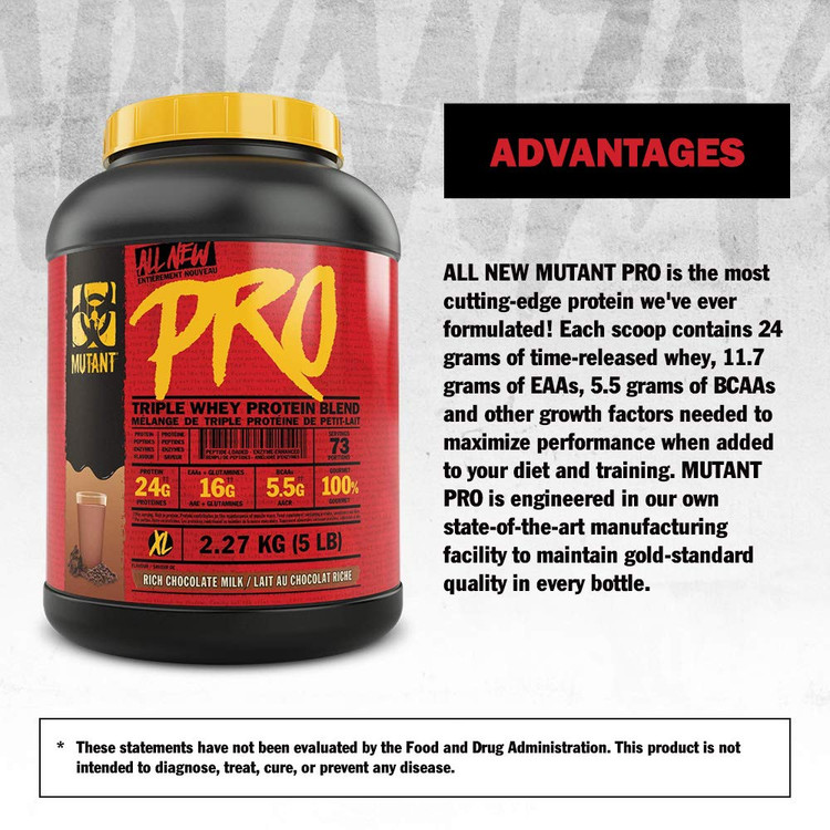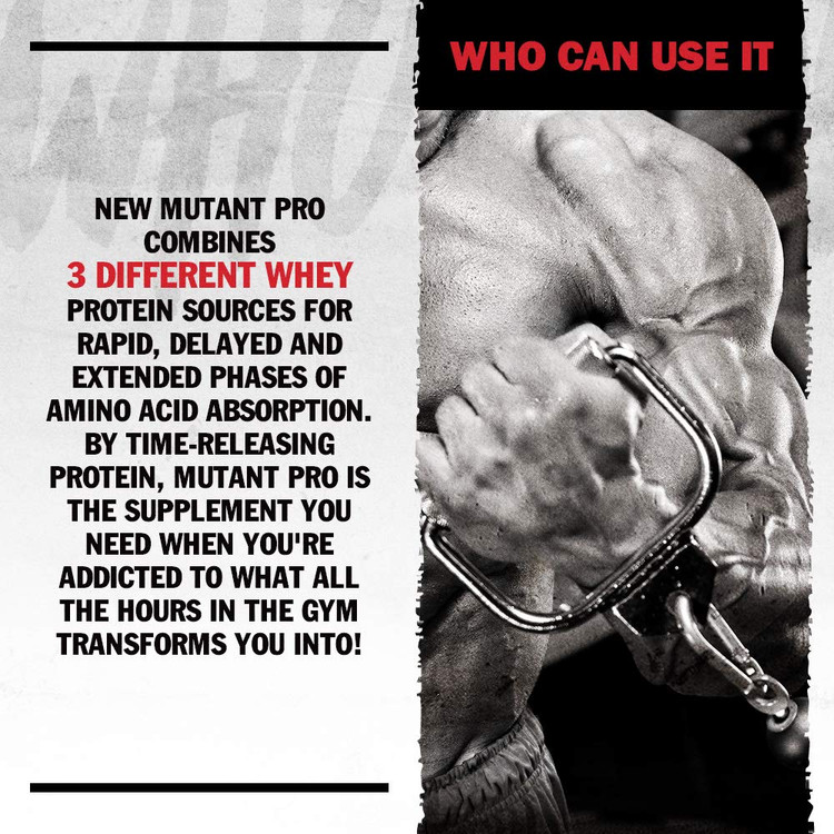 - اسیدهای آمینه | اینجا خبری از افزایش ناگهانی پروتئین نیست! هر پیمانه پروتئین MUTANT PRO حاوی ۲۴ گرم پروتئین وی با رهایش تدریجی، ۱۱.۷ گرم EAA، ۵.۵ گرم BCAA و ۴.۳ گرم گلوتامین است. این مواد برای عضله سازی سریع ضروری هستند.