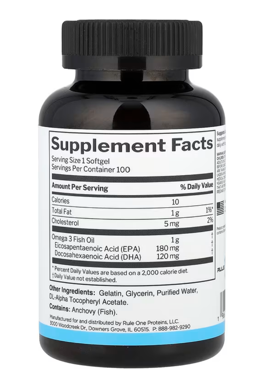 سافتژلهای روغن ماهی R1 حاوی ۱۰۰۰ میلیگرم روغن ماهی هستند که ۱۸۰ میلیگرم EPA و ۱۲۰ میلیگرم DHA تولید میکنند. بدن ما نمیتواند به طور مؤثر این مواد مغذی ضروری را تولید کند، بنابراین باید آنها را از غذاهای دریایی یا مکملهای ساخته شده از منابع دریایی دریافت کنیم.
