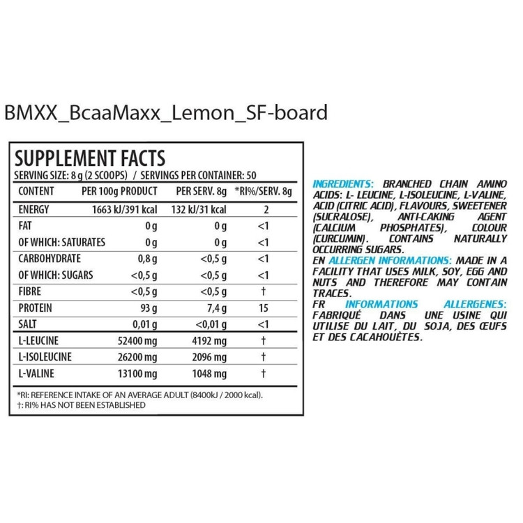 BCAA MAXX اسیدهای آمینه کلیدی L-Leucine، L-Isoleucine و L-Valine را به شکل پودر با نسبت ۴:۲:۱ فراهم میکند. اینها به عنوان اسیدهای آمینه شاخهدار (BCAAs) شناخته میشوند.
