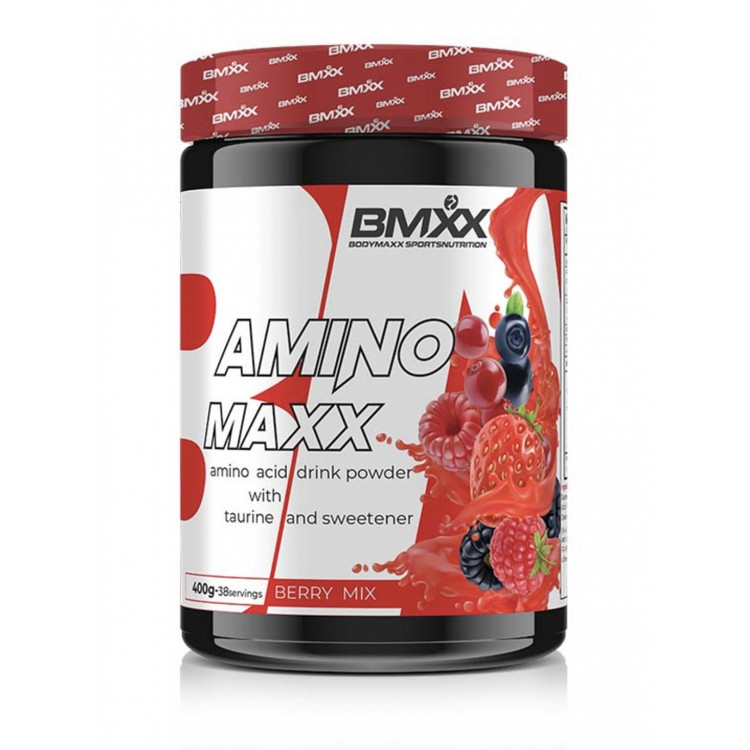آمینو مکس بادی مکس BMXX AMINO MAXX یک پودر نوشیدنی مبتنی بر اسید آمینه با تائورین و شیرین کننده، در دو طعم میوه ای: هندوانه و بری میکس است.