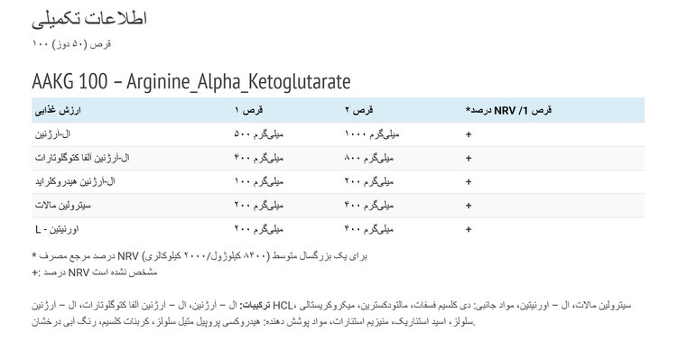 AAKG ترکیبی از ال-آرژنین، ال-آرژنین آلفا-کتوگلوتارات دی هیدرات و ال-آرژنین HCL است که حاوی مکمل غذایی میباشد. این مکمل برای تأمین انرژی ناشی از فعالیتهای شدید عضلانی، به ویژه برای ورزشکاران، طراحی شده است. این مکمل میتواند از اهداف تناسب اندام متنوعی از جمله عملکرد و رشد عضلات پشتیبانی کند.