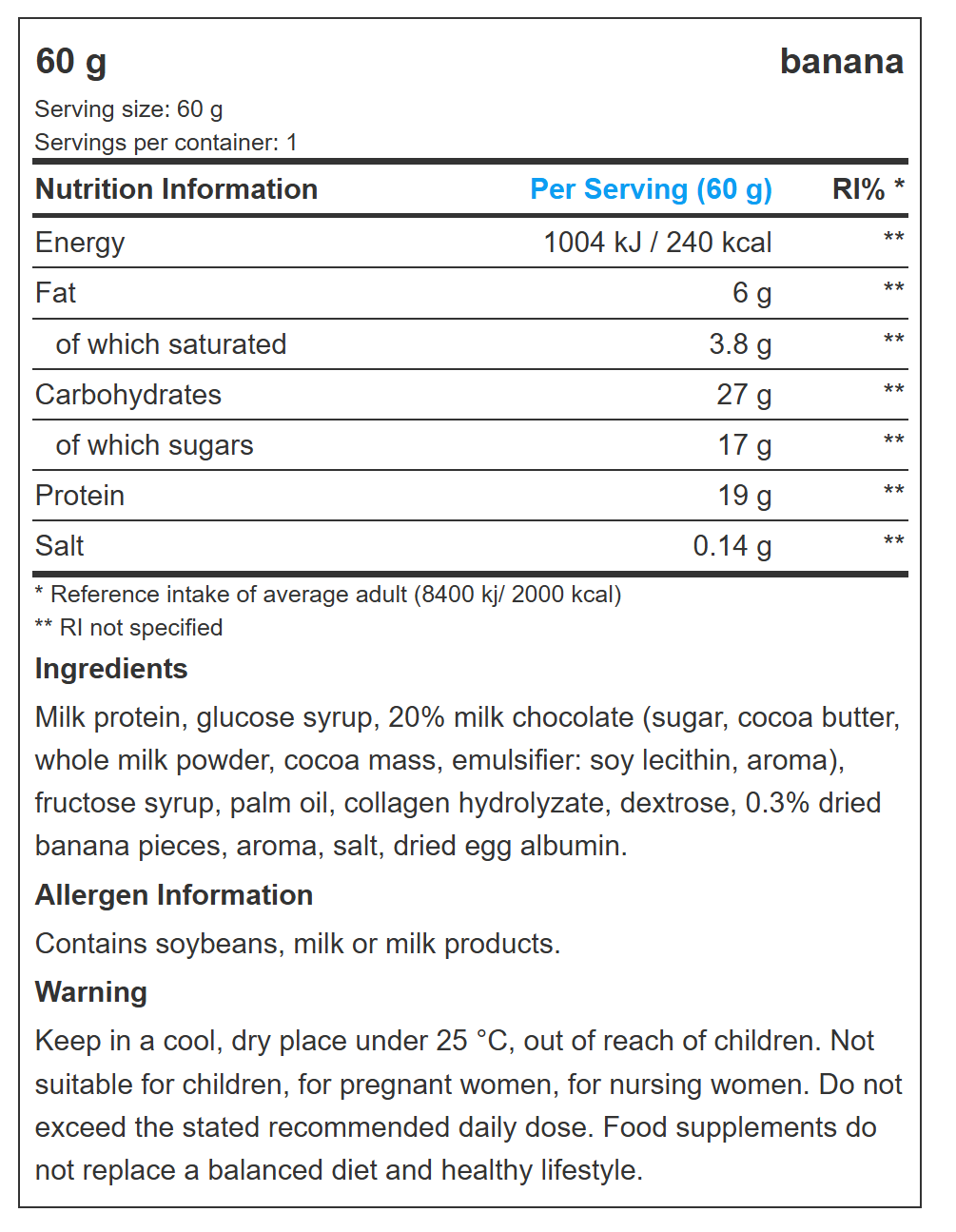 مقدار مصرف: 32% پروتئین بار: به عنوان میان وعده، قبل یا بعد از تمرین. نکته: برای افزایش پروتئین وعدههای غذایی کربوهیدراتی، از شکلات تختهای به عنوان دسر استفاده کنید. هشدار: برای کودکان زیر ۱۵ سال، زنان باردار و شیرده مناسب نیست. در دمای 10 تا 25 درجه سانتیگراد نگهداری شود و از یخ زدگی، رطوبت و نور مستقیم خورشید محافظت شود.