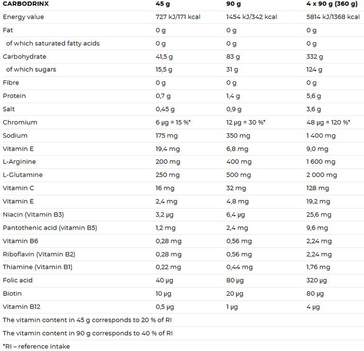ترکیبی از ۵ کربوهیدرات پیچیده، شامل مادهی برند Palatinose©، حداکثر استفاده از انرژی را در طول عملکرد شما تضمین میکند. همچنین به طور قابل توجهی به ریکاوری پس از فعالیتهای طاقتفرسا کمک میکند. بنابراین، چه در حال عضلهسازی باشید و چه پس از مسابقهی آیرونمن، CARBODRINX شما را به مسیر درست برمیگرداند. برای همه ورزشها. هر روز.