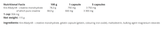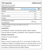 ترکیبات: Kre-Alkalyn® – کراتین مونوهیدرات، کپسول ژلاتینی (ژلاتین، اکسید آهن رنگی)، مالتودکسترین، منیزیم استئارات به عنوان عامل حجم دهنده.