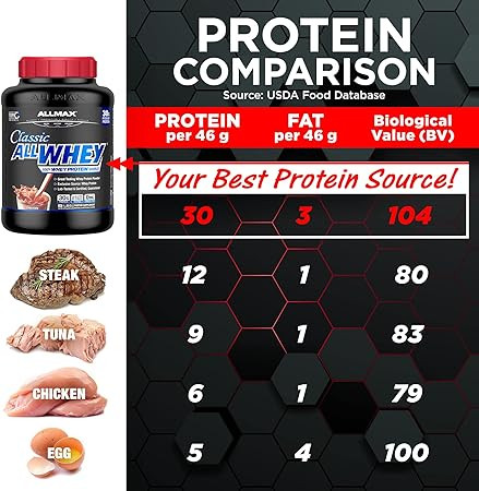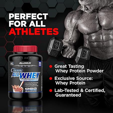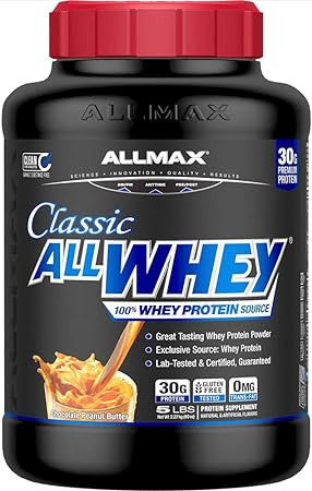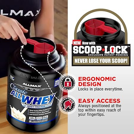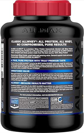 - 100% پروتئین آب پنیر - ALLMAX CLASSIC ALLWHEY 30 گرم پروتئین بدون گلوتن را در هر پیمانه ارائه می کند که از کنسانتره پروتئین وی و ایزوله پروتئین وی تهیه شده است.