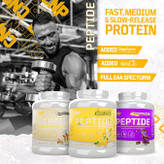 پپتید گام بعدی در تکامل شیک پروتئینی است که ما میشناسیم. پروتئین وی همیشه جایگاه خود را خواهد داشت، اما برای کسانی که میخواهند عملکرد خود را ارتقا دهند و به آن برتری دست یابند، پپتید پاسخ است. بدنسازان حرفهای، کراسفیترها، مردان قوی و ورزشکاران المپیک برای دههها از آن استفاده کردهاند. آخرین نسخه ما موثرترین و بهترین طعم را تا به امروز دارد.