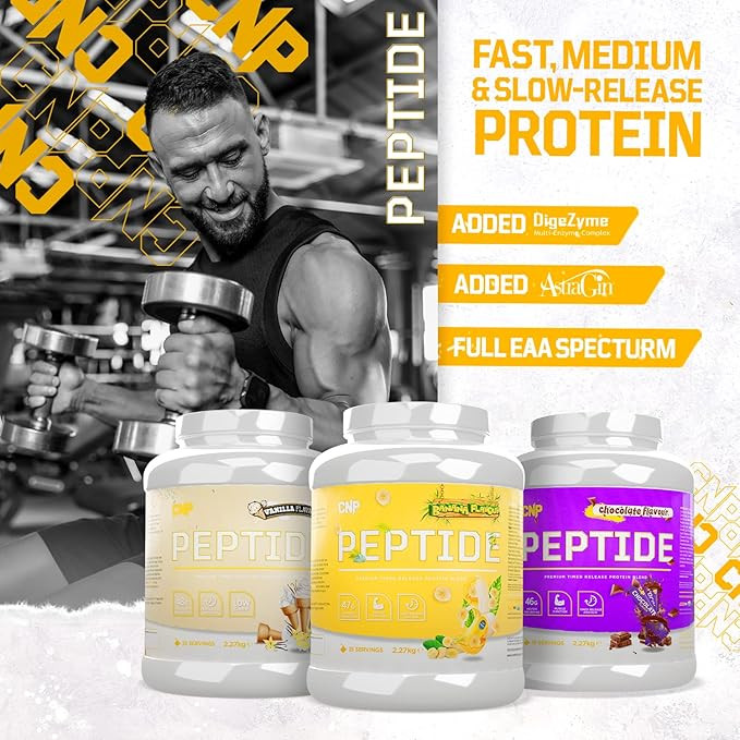 پپتید CNP ما ترکیبی چند مرحلهای از ۴ نوع پروتئین با بالاترین کیفیت است - هر نوع با سرعت متفاوتی هضم میشود تا از جذب هرچه بیشتر پروتئین از هر شیک اطمینان حاصل شود. پپتید CNP حاوی پروتئین وی ایزوله و کنسانتره Native است که در دمای پایین و مستقیماً از شیر بدون چربی فرآوری میشوند و به طور طبیعی سرشار از لوسین و گلوتامین و در عین حال کم لاکتوز و چربی هستند. پروتئین وی Native با کازئین میسلار، آلبومین تخم مرغ و گلوتامین متصل به پپتید ترکیب شده است تا پپتید CNP را به ترکیبی بسیار کاربردی تبدیل کند که یک پروفایل اسید آمینه عالی را برای کمک به بازیابی، ترمیم و رشد شما در عین پشتیبانی از عملکرد طبیعی عضلات و سنتز پروتئین ارائه میدهد. با منیزیم اضافه شده برای کاهش خستگی و پشتیبانی از متابولیسم طبیعی تولید انرژی - ایدهآل برای کاربرانی که رژیم غذایی تخصصی دارند. همچنین با DigeZyme (مرکب چند آنزیمی) و AstraGin (تقویتکننده جذب مواد مغذی) ثبت شده برای جذب بهینه، تقویت شده است.