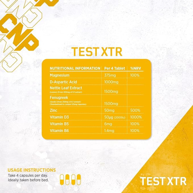 پرو تست ایکس تی آر یک فرمول بسیار کاربردی و طبیعی برای پشتیبانی از تستوسترون خون ارائه میدهد که از اشکال بیس گلیسینات روی و منیزیم برای تأمین مواد با دسترسی زیستی بالا برای بدن شما استفاده میکند. فرمولاسیون پرو تست ایکس تی آر همچنین حاوی ۱۵۰۰ میلیگرم گزنه و ۱۰۰۰ میلیگرم اسید دی-آسپارتیک در کنار ۱۵۰۰ میلیگرم عصاره شنبلیله است که به صورت استاندارد حاوی ۵۰٪ ساپونین است. پرو تست ایکس تی آر به عنوان یک راه میانبر ساخته نشده است. این محصول برای حمایت از بدن شما در برابر فشارهای ناشی از یک رژیم تمرینی سخت و فشرده طراحی شده است و برای دستیابی به نتایج مطلوب طراحی شده است. دستورالعمل: روزانه ۴ کپسول مصرف کنید. در حالت ایدهآل قبل از خواب مصرف شود.