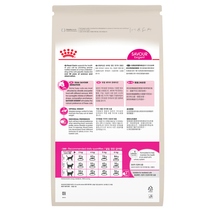برخی از گربههای بدغذا بیشتر جذب تنوع در ظرف غذا میشوند. غذای خشک SAVOUR EXIGENT حاوی ۲ نوع غذای خشک مختلف، هر کدام با فرمول و بافت متفاوت، است تا به تحریک ترجیحات طبیعی این گربهها کمک کند.