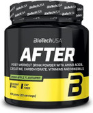 BioTechUSA After یک فرمول پیچیده و طعمدار برای بعد از تمرین به شکل پودر است که حاوی تمام مواد مغذی مهم مورد نیاز بدن برای ریکاوری سریعتر است. این محصول حاوی اسیدهای آمینه ضروری، قند و کربوهیدراتهای پیچیده با شاخص گلیسمی ترکیبی و همچنین کراتین مونوهیدرات بافر شده است. مواد اضافی - مقدار زیادی ویتامین و مواد معدنی - به متابولیسم این مواد و همچنین عملکرد بهتر عضلات کمک میکنند. به عنوان مثال، کروم به حفظ سطح قند خون طبیعی کمک میکند. این فرمول حاوی روی است که در سنتز طبیعی پروتئین و متابولیسم سالم کربوهیدرات نقش دارد. مواد فعال همچنین شامل ویتامین C، ویتامین B12 و ویتامین B6 هستند و این سه جزء در کنار هم خستگی و کوفتگی را کاهش میدهند، در حالی که از عملکرد طبیعی سیستم عصبی نیز پشتیبانی میکنند.