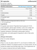 عصاره دانه شنبلیله (Trigonella foenumgraecum) 74.2٪، پوسته کپسول [ژلاتین، عامل لعاب (لاک)، رنگ (اکسیدها و هیدروکسیدهای آهن)، تنظیم کننده اسیدیته (هیدروکسید آمونیوم)، تنظیم کننده اسیدیته (هیدروکسید پتاسیم)]، عامل حجم دهنده (فسفات کلسیم)، عوامل ضد کلوخه شدن (نمکهای منیزیم اسیدهای چرب، دی اکسید سیلیکون).