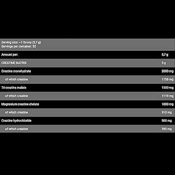 - مونوهیدرات، مالات (TCM)، کلات منیزیم و هیدروکلراید - نرخ های مختلف جذب، سطوح مختلف فراهمی زیستی، راندمان بالای اشباع عضلانی با کراتین