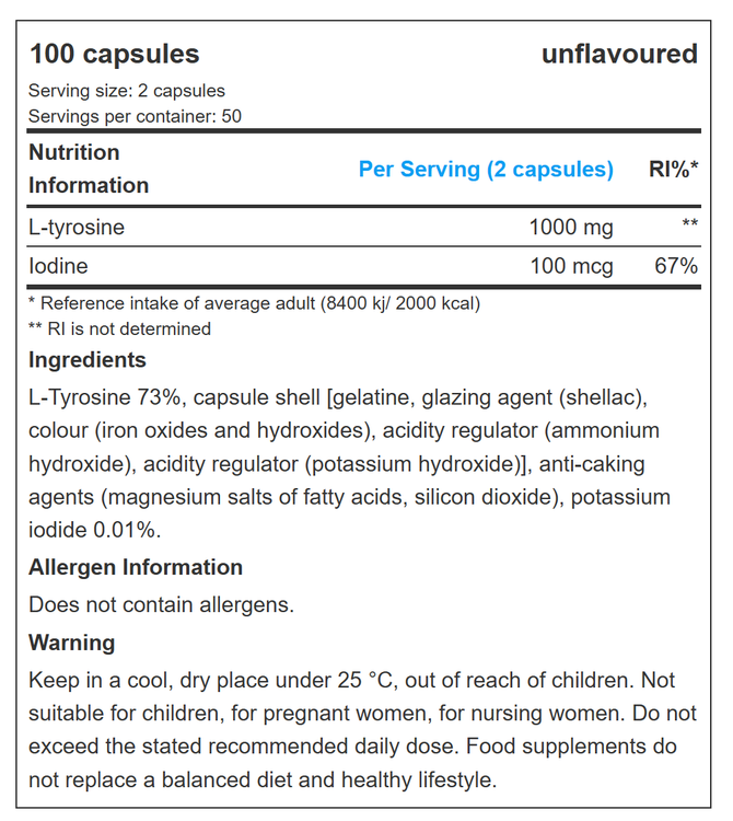 - 🧠 تقویتکننده مغز: تمرکز و توجه ذهنی خود را با ال-تیروزین افزایش دهید! کپسولها با ید غنی شدهاند که به عملکرد طبیعی شناختی و عملکرد سیستم عصبی کمک میکند.