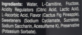 آب، ال-کارنیتین، فروکتوز، تنظیمکنندههای اسیدیته (اسید سیتریک، اسید لاکتیک)، ال-اسکوربیک اسید، طعمدهنده (انجیر کاکتوسی و آناناس)، شیرینکنندهها (سدیم سیکلامات، سوکرالوز، سدیم ساخارین، آسهسولفام پتاسیم)، نگهدارنده (پتاسیم سوربات).