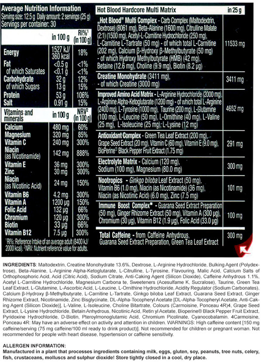 مواد تشکیل دهنده و شکل ظاهری هات بلاد هاردکور از سایتک نوتریشن